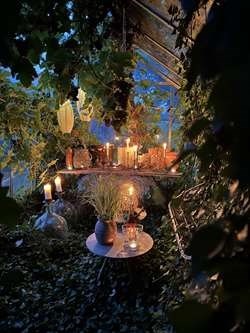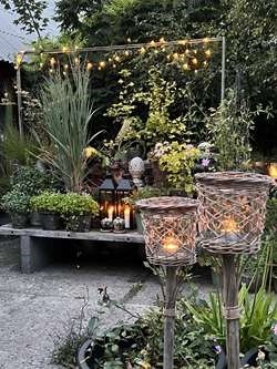 Kom og oplev den stemning, som kun levende lys kan skabe i sensommerens dunkle aftener. Jeg har tændt næsten 500 levende lys rundt i haven, på terrasserne, siddepladser, hyggekroge og i dekorationer.
